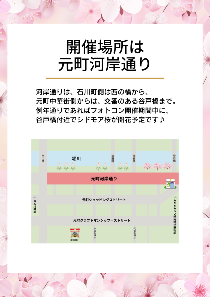 1日ずつ顔を変えていく春の河岸通り。