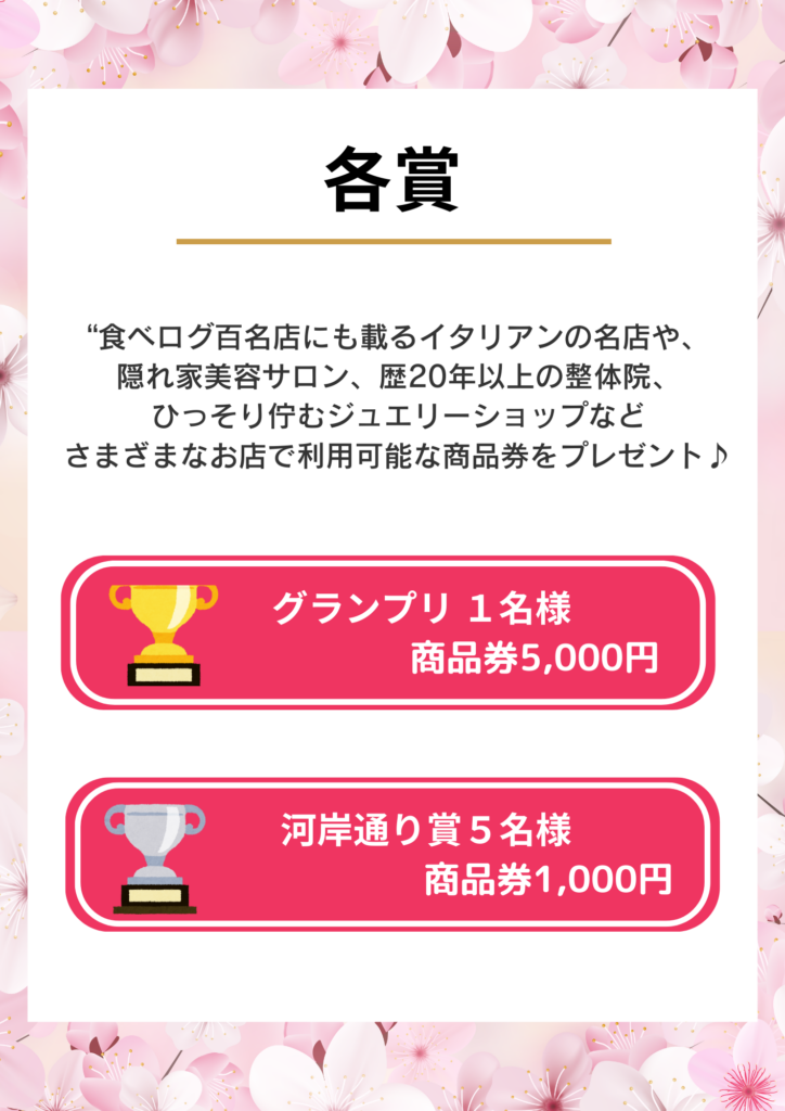 グランプリは、河岸通りのお店で使える5000円分の商品券がもらえます。